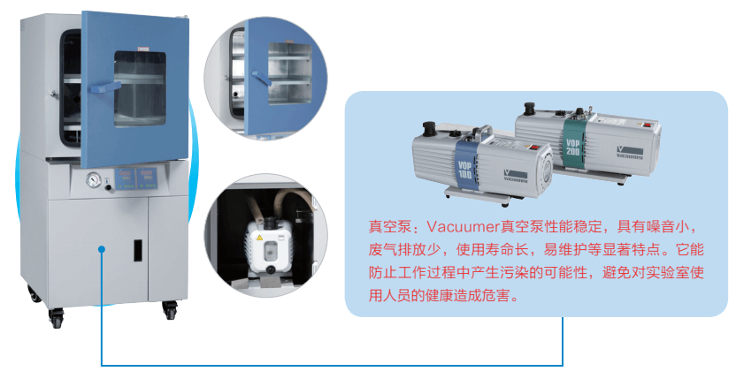 用途概述 真空干燥箱专为干燥热敏性、易分解和易氧化物质而设计,能够向内部充入惰性气 体,特别是一些成分复杂的物品也能进行快速干燥。